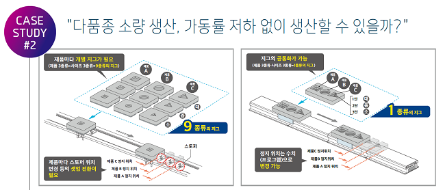 - 제품마다 스토퍼 위치 변경 등의 셋업 전환 필요