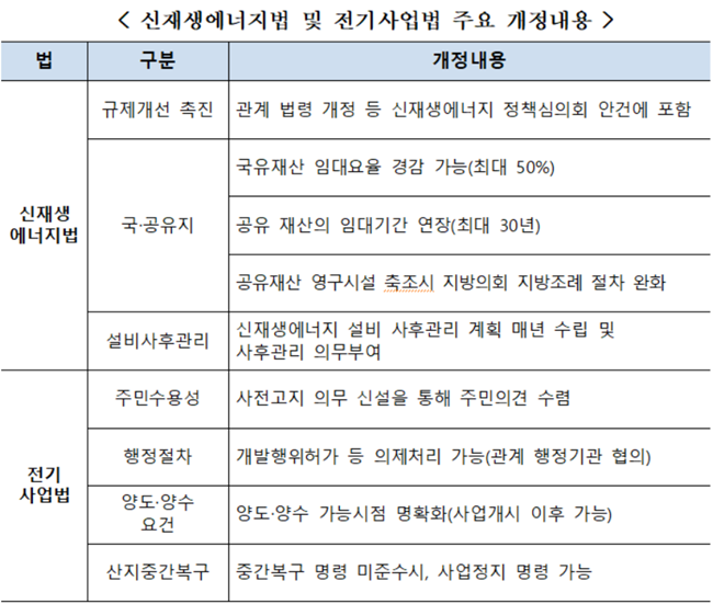신재생에너지법의 주요 개정내용은 다음과 같다.