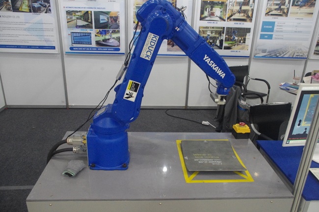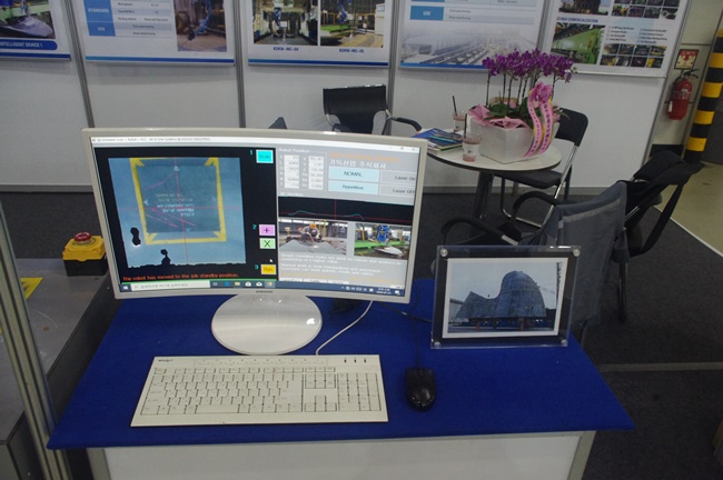 기득산업 관계자는 “이 장비는 기존의 사람 작업을 대체하면서 효율을 높인다”라며, “이번 전시회에서는 야스카와 로봇과 소프트웨어를 선보이며 고객들의 이해도를 높이고 있다”고 밝혔다. 이 기업은 이날 행사에서 로봇과 소프트웨어 구성을 활용해 작업 반경을 파악하는 등 다양한 시스템을 선보이며 눈길을 끌었다.