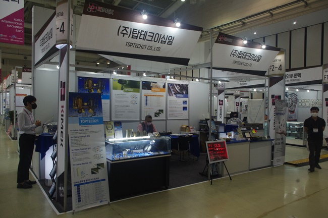 (주)탑테크이십일(이하 탑테크이십일)이 지난 7월 21일(화)부터 24일(금)까지 창원컨벤션센터에서 개최된 ‘2020 한국국제기계박람회(KIMEX 2020)’에 참가했다. 이 기업은 생산성 향상과 원가절감, 공구의 수명연장을 위해 다양한 초경질 피막을 각종 공구류, 반도체 금형, 냉간단조 펀치 등에 적용하고 있다. 또한 수저 등 여러 장식품에 색상을 적용해 제품의 고급화를 실현하고 있다.