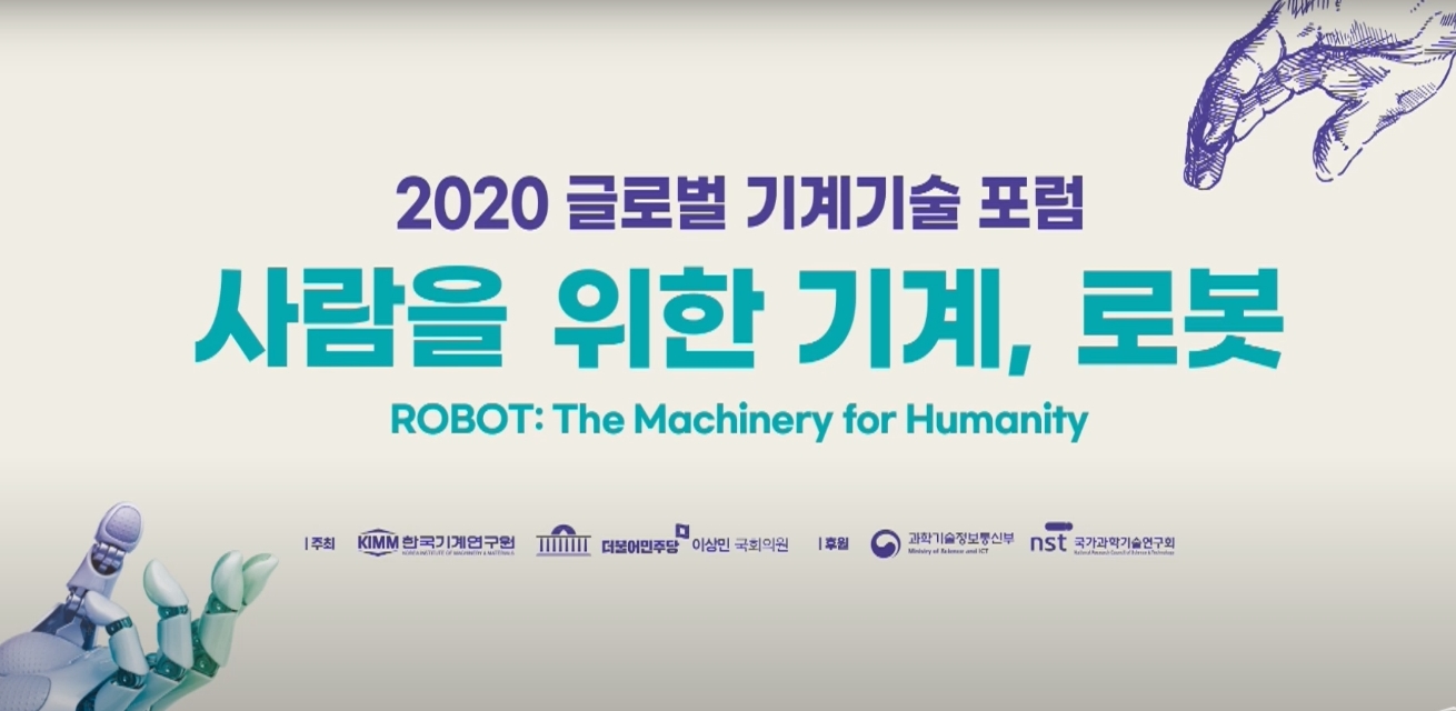 한국기계연구원(이하 기계연)이 지난 11월 11일(수)에 ‘사람을 위한 기계, 로봇’을 주제로 ‘2020 글로벌 기계기술 포럼(2020 Global Forum on Mechanical Engineering)’을 온라인 으로 개최했다.
