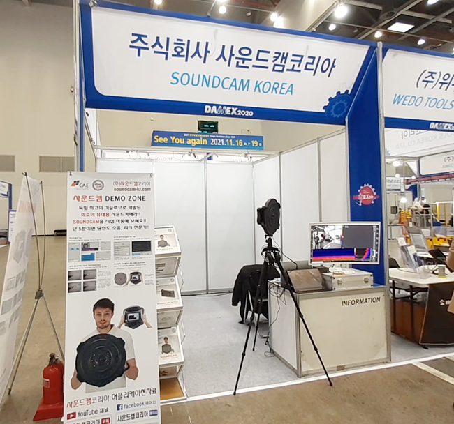 (주)사운드캠코리아(이하 사운드캠코리아)가 지난 11월 24일(화)부터 27일(금)까지 엑스코(EXCO)에서 개최된 ‘제21회 대구국제자동화기기전(DAMEX 2020)’에 참가했다. 이 기업은 다채널 마이크로폰을 이용한 클라우드-AI 기반 음향탐지, 추적 및 검사 시스템을 전문적으로 제안해왔다. 이번 전시회에서는 독일 최고의 기술로 개발된 휴대용 사운드카메라를 소개하며 많은 이들의 이목을 집중시켰다.