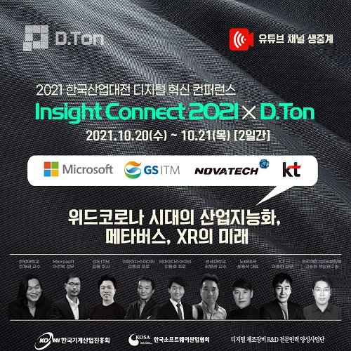 한국기계산업진흥회 손동연 회장이 주최하고 한국 소프트웨어 산업협회(KOSA), 디지털 제조장비 R&D 전문 인력 양성사업단이 주관하는 ‘2021 한국 산업대전 디지털 혁신 컨퍼런스(Insight Connect 2021 x D.Ton)’가 오는 10월 20일(수) ~ 21일(목) 이틀간 열린다.