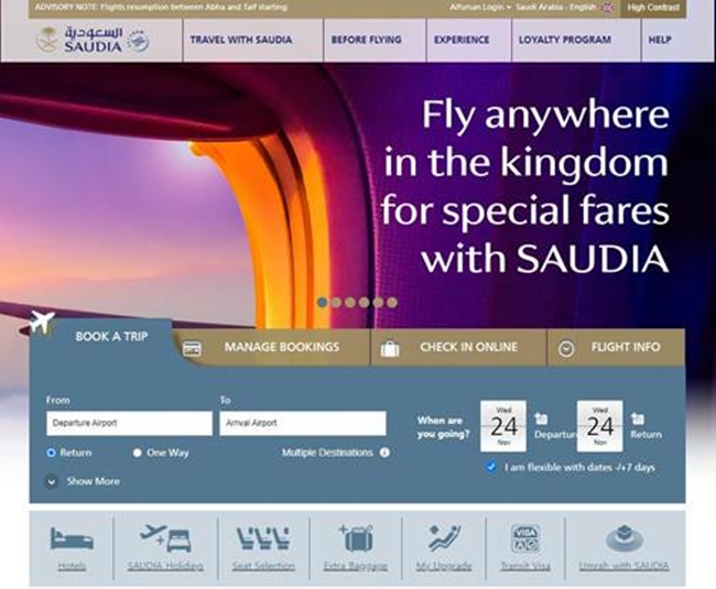 다양한 온라인 서비스를 함께 제공하는 사우디아 항공