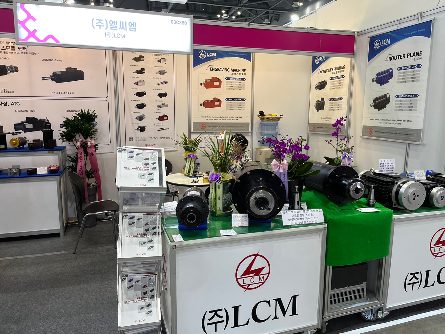 엘씨엠은 이번 전시회에서 자체 기술로 국산화한 다양한 제품들을 출품했다. 그 중에서도 동사의 스핀들 일체형 모터는 CNC장비에 장착하는 부품으로, 주물 가공과 같은 작업에 활용되는 모터이다. 엘씨엠의 스핀들 일체형 모터는 최고 6,000RPM까지 가동 가능한 제품이다.