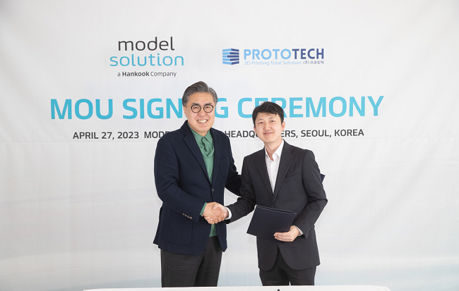 한국앤컴퍼니그룹(구 한국타이어그룹)의 계열사인 원스탑 하드웨어 플랫폼(One-stop H/W Platform) 기업 모델솔루션(주)(이하 모델솔루션)과 국내 3D 프린팅 기업 (주)프로토텍(이하 프로토텍)이 지난 4월 27일 경기도 부천시 오정동 모델솔루션 본사에서 3D프린팅 사업 협력을 위한 업무협약(MOU)를 체결했다고 8일(월) 밝혔다.