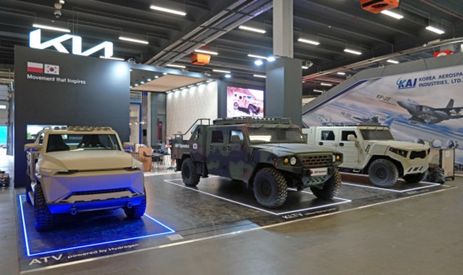 올해 기아는 유럽 지역 최초로 ‘수소 ATV(수소동력 경전술차량) 콘셉트카’를 공개하고, 소형전술차량 ‘4인승 카고 트럭’과 ‘박격포 탑재차’를 함께 전시한다.