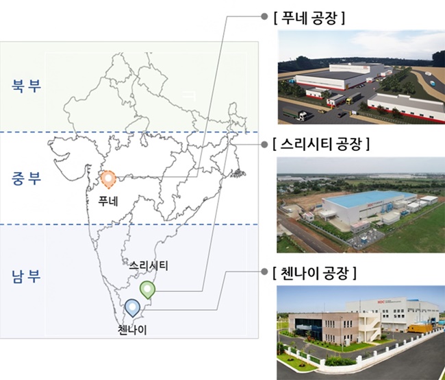 HDC현대EP는 인도 남부 첸나이, 스리시티에 이어 중부 지역인 마하라슈트라 주 푸네시에 연간 14,000톤의 생산 공장을 설립해 인도 전역으로 공급망을 확대할 계획이라고 밝혔다. HDC현대EP는 2024년 내 공장 건설을 완료하고 시운전을 거쳐 2025년 초 본격적인 양산을 목표로, 추후 생산 능력을 추가 확대할 방침이다.