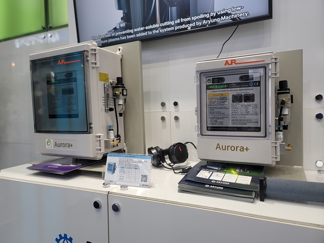 Plasma Coolant Sterilization Device(APG-001)는 안정적으로 장시간 플라즈마 발생이 가능해 미생물 살균 능력을 확보할 수 있고, 99.9%의 부패원인균 살균 능력과 90% 이상의 유기물 제거 능력을 갖추고 있다. 또한 청정 절삭유는 장기간 원형을 유지하며 부패된 절삭유의 각종 악취 탈취, 탈색 및 재생 효과가 있다.