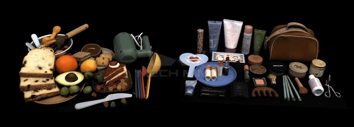 베이킹 도구 및 음식(왼쪽)과 스킨케어 및 메이크업 제품(오른쪽) / 사진. 메크마인드로보틱스