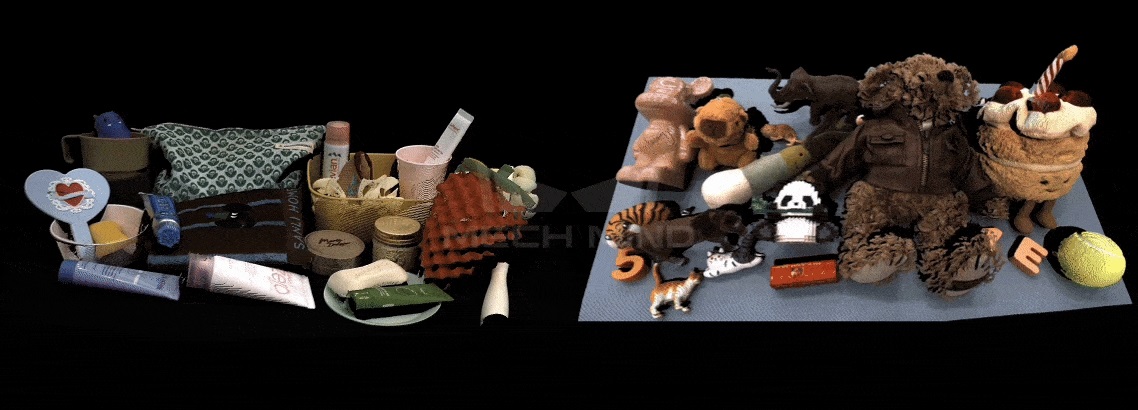 세면용품(왼쪽)과 다양한 텍스처의 인형(오른쪽) / 사진. 메크마인드로보틱스