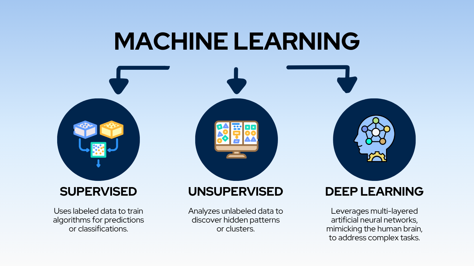 •딥 러닝. 인간 두뇌의 기능에서 영감을 받은 다층 인공 신경망을 활용하여 복잡한 작업을 처리하는 전문 하위 분야다. 이러한 모델은 대량의 데이터를 처리하고 반복적인 훈련을 통해 내부 매개변수를 조정하여 패턴을 식별하고 결정을 내리는 방법을 학습한다.