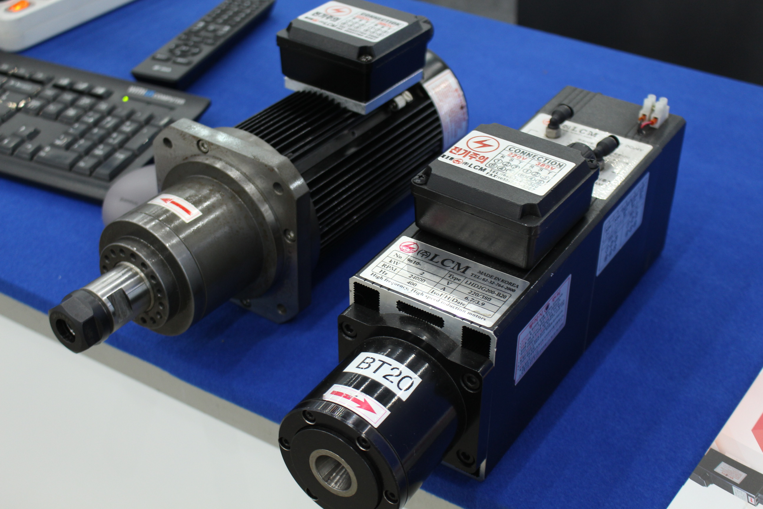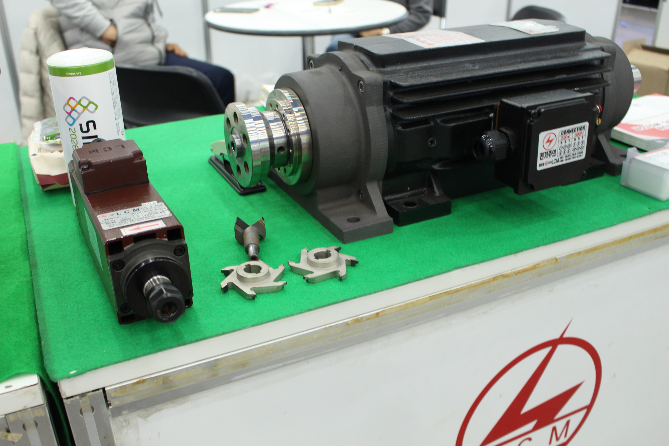 전시 부스의 중심은 저속 고토크 스핀들 모터였다. 감속기를 제거한 단순 구조로 공간 활용성을 높인 것이 특징이며, 유리가공·조각기·창호가공기·루터 등 다양한 장비 제조사에서 폭넓게 사용되고 있다.