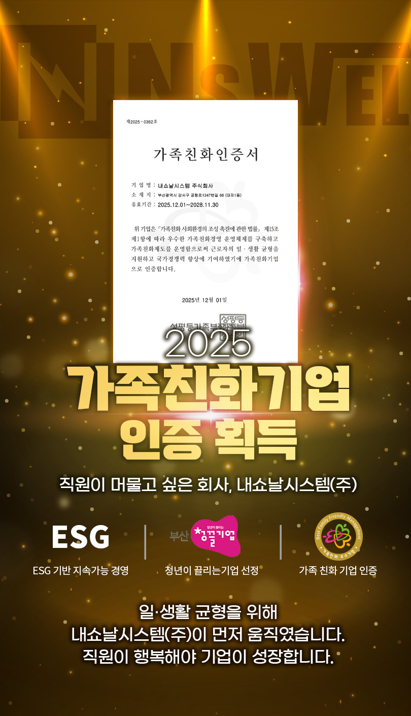 가족친화기업 인증 획득 / 사진. 내쇼날시스템(주) NSWEL