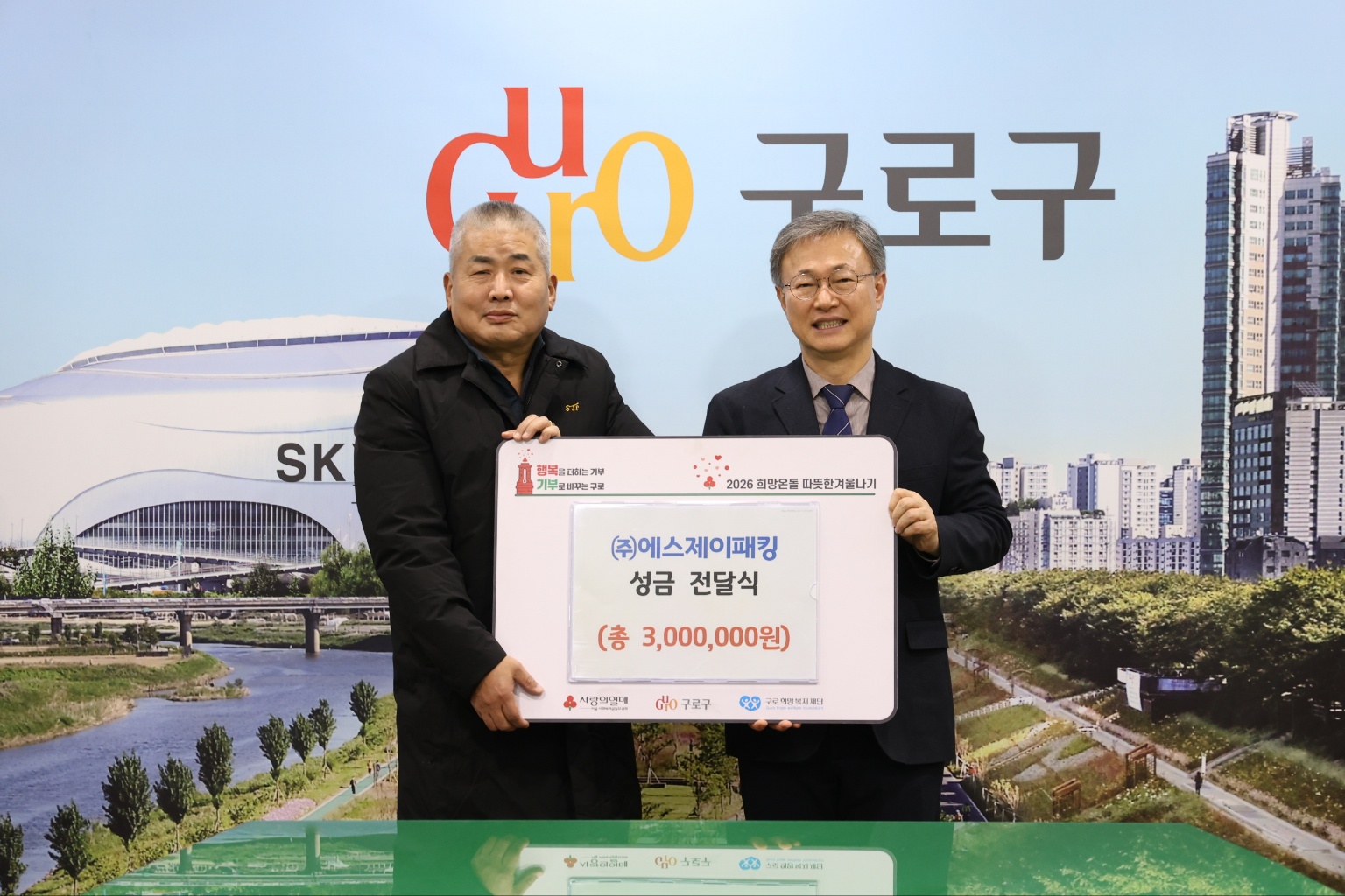 산업용 패킹 전문기업 (주)에스제이패킹(이하 에스제이패킹)이 어려운 이웃을 위한 따뜻한 나눔에 동참했다. 에스제이패킹은 최근 구로구청에서 열린 ‘2026 희망온돌 따뜻한 겨울나기’ 성금 전달식에서 총 300만 원을 기부하며 지역 사회공헌 활동을 이어갔다.