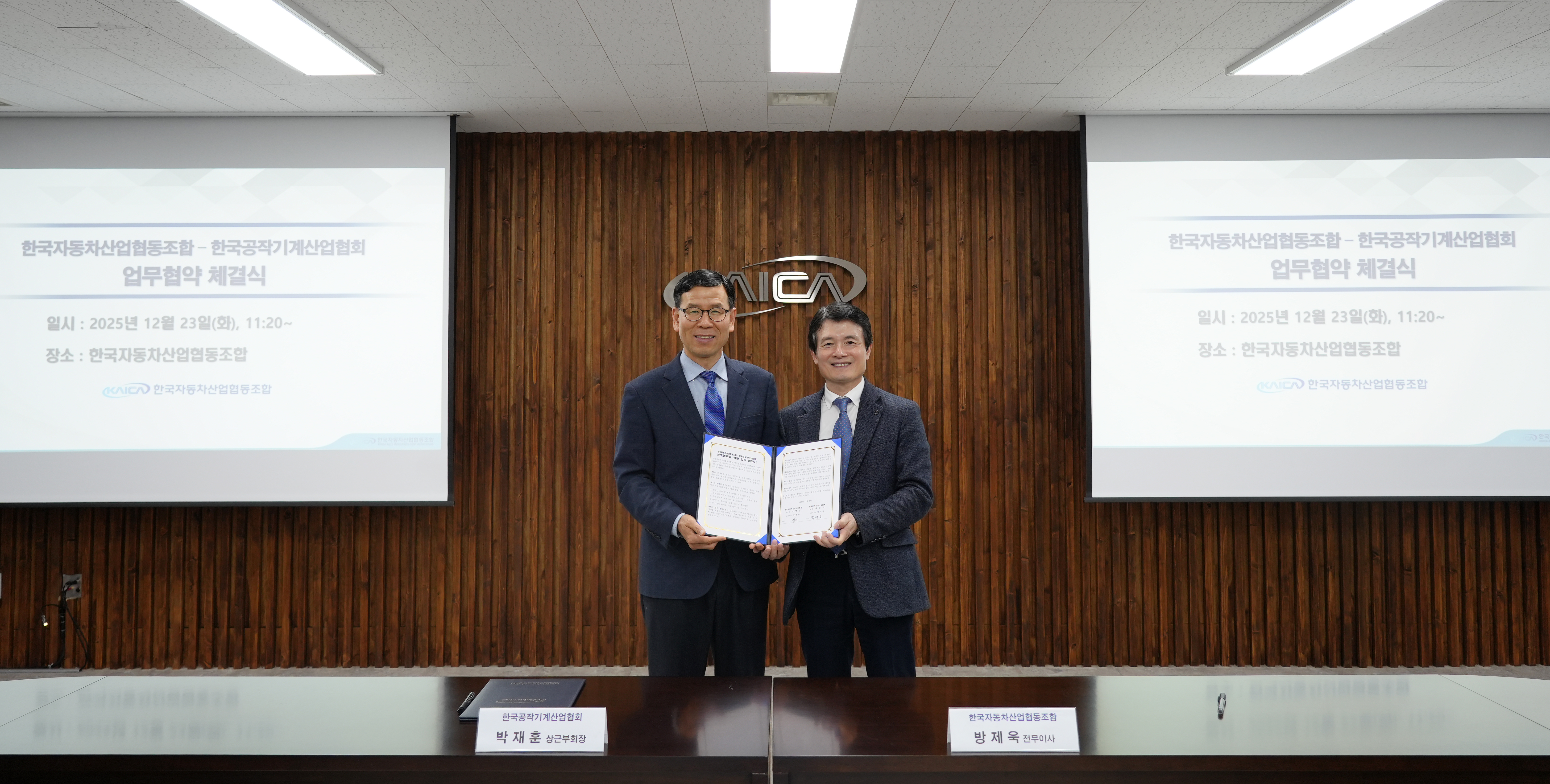 한국공작기계산업협회(이하 공작기계협회)와 한국자동차산업협동조합(이하 자동차산업협동조합)은 12월 23일, 자동차산업협동조합 회의실에서 자동차 및 부품 제조 등 생산제조 기술 분야의 상생 발전을 위한 업무협약(MOU)을 체결했다.
