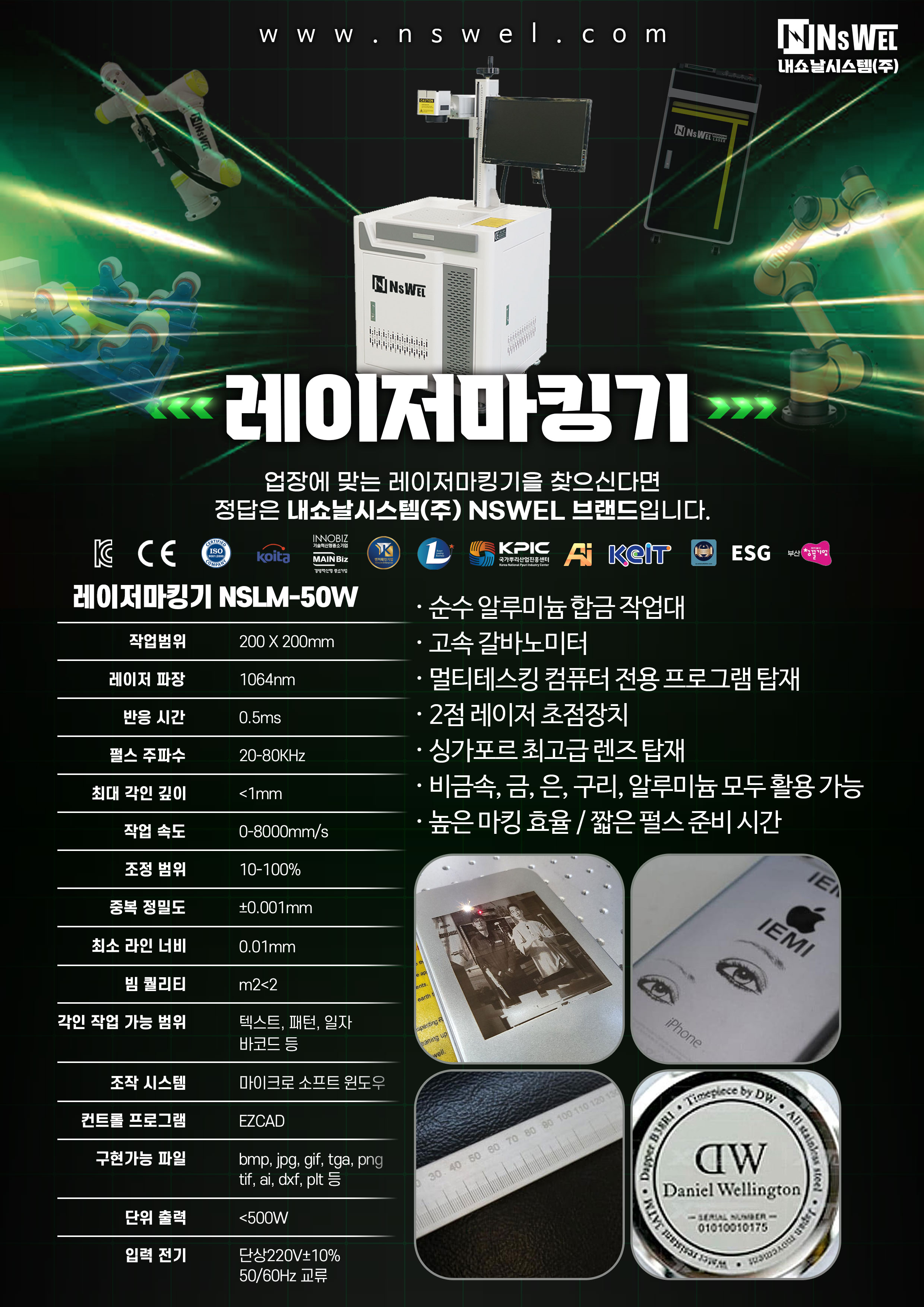 레이저마킹기, 내쇼날시스템(주) NSWEL이 가장 강하게 밀고 있는 주력 제품